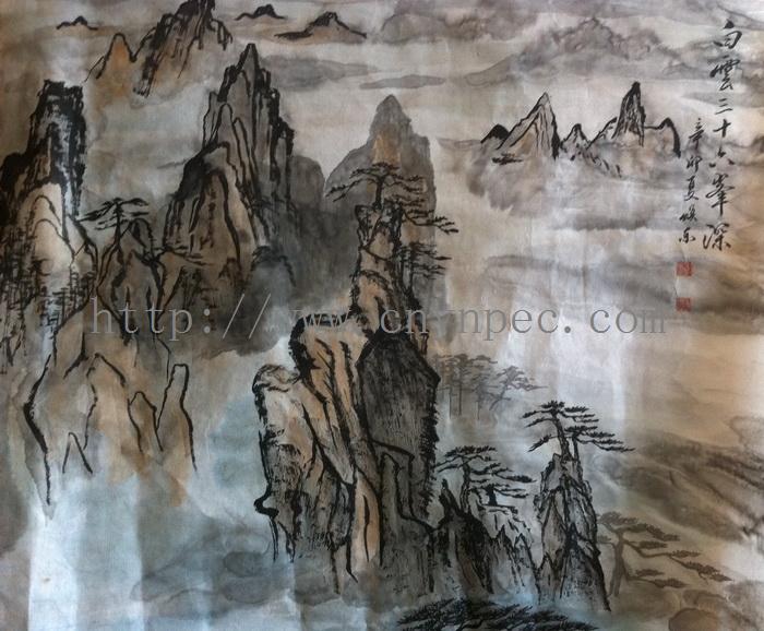 云南普洱茶信息网推荐·茶人书画家·耕田之子·丁焕东先生作品·山水图·斗方4