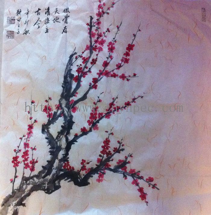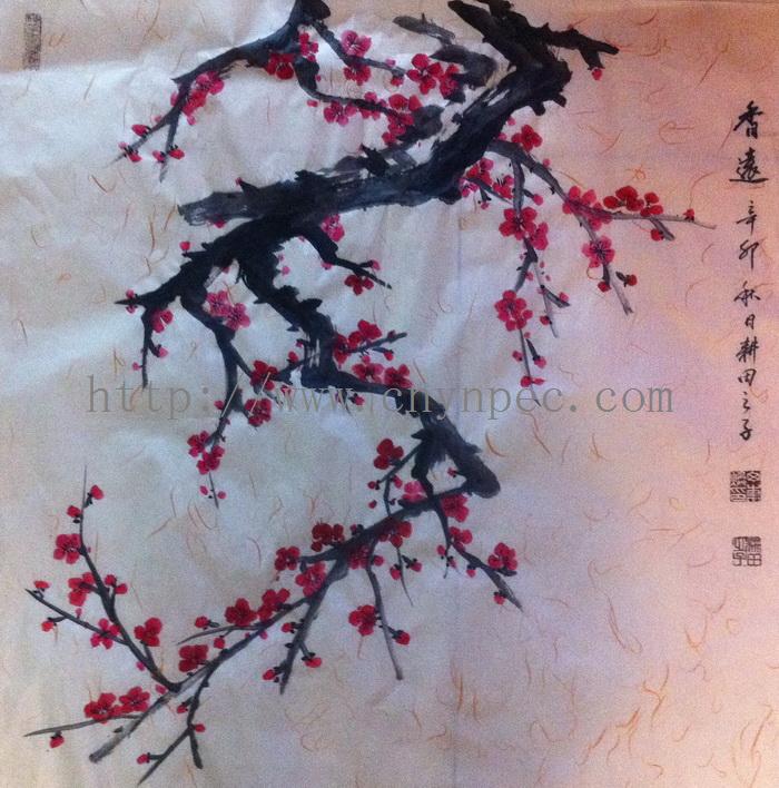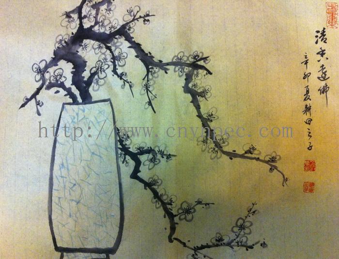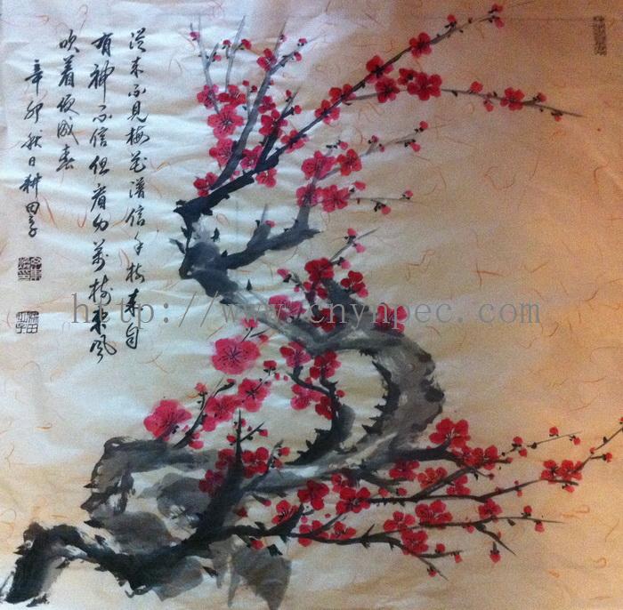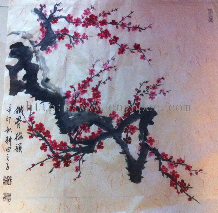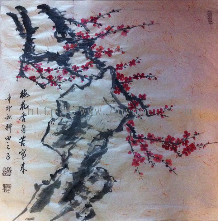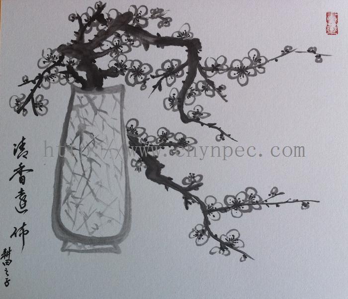 云南普洱茶信息网推荐·茶人书画家·耕田之子·丁焕东先生作品·插梅图·斗方