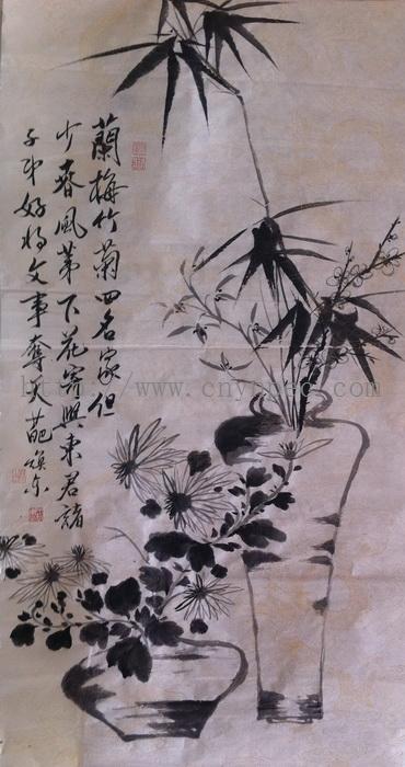 云南普洱茶信息网推荐·茶人书画家·耕田之子·丁焕东先生作品·蘭梅竹菊图·中堂2