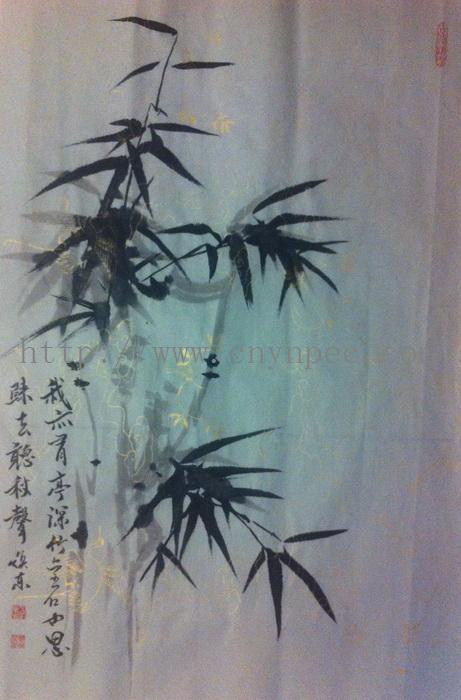 云南普洱茶信息网推荐·茶人书画家·耕田之子·丁焕东先生作品·竹图·中堂2