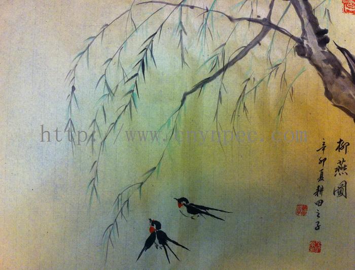 云南普洱茶信息网推荐·茶人书画家·耕田之子·丁焕东先生作品·柳燕图·斗方1