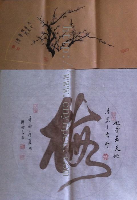 云南普洱茶信息网推荐·茶人书画家·耕田之子·丁焕东先生作品·扇圆梅套图·中堂