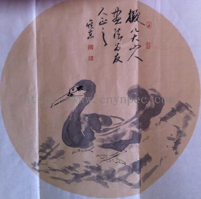 云南普洱茶信息网推荐·茶人书画家·耕田之子·丁焕东先生作品·天鹅图·圆形·斗方1
