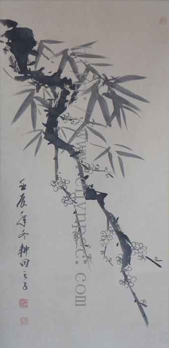 云南普洱茶信息网推荐·茶人书画家·耕田之子·丁焕东先生作品·梅竹图·中堂·