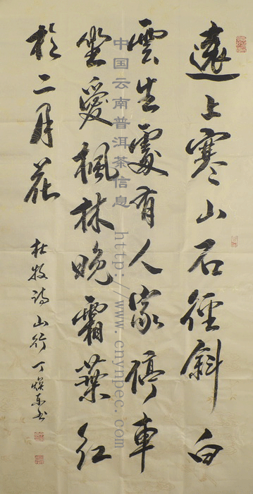 云南普洱茶信息网推荐·茶人书画家·耕田之子·丁焕东先生作品·四尺中堂·