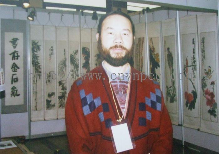 云南普洱茶茶人书画家地丁先生在书画展位上