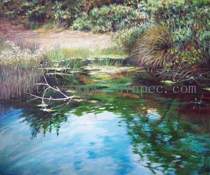 云南普洱茶信息网推荐·云南茶人书画家·欧阳菲女士作品·池塘边