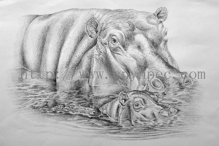 云南普洱茶信息网推荐·云南茶人书画家·欧阳菲女士作品·钢笔画·河马