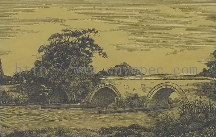 云南普洱茶信息网推荐·云南茶人书画家·欧阳菲女士作品·钢笔画·家乡的桥
