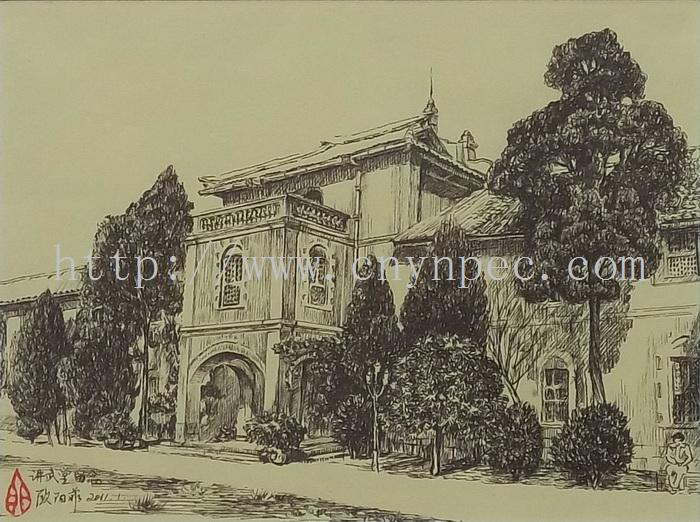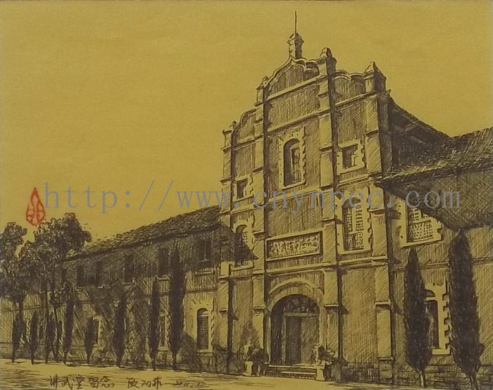 云南普洱茶信息网推荐·云南茶人书画家·欧阳菲女士作品·钢笔画·昆明讲武堂