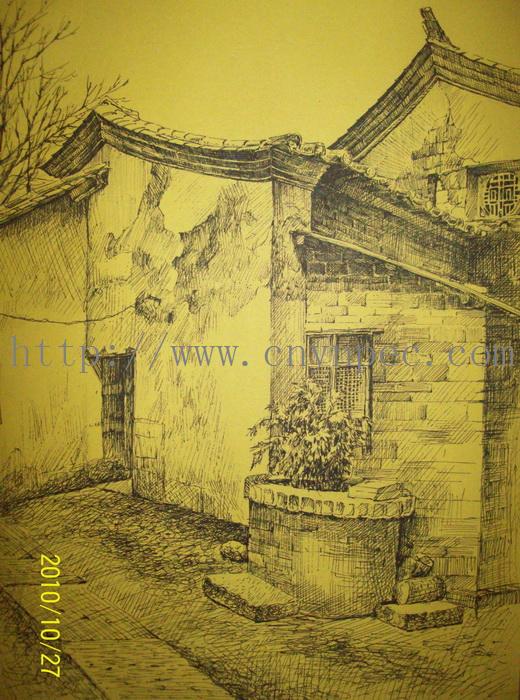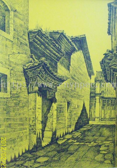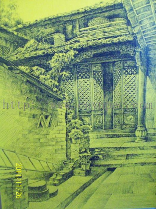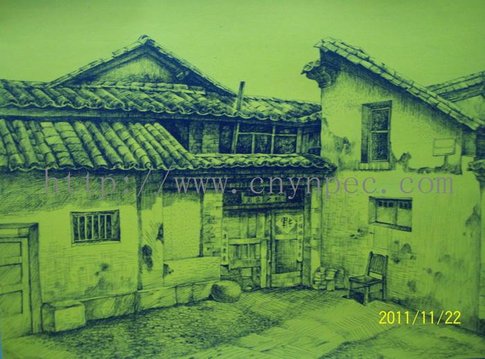 云南普洱茶信息网推荐·云南茶人书画家·欧阳菲女士作品·钢笔画·昆明老宅