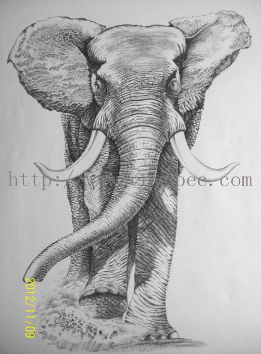 云南普洱茶信息网推荐·云南茶人书画家·欧阳菲女士作品·钢笔画·亚洲象