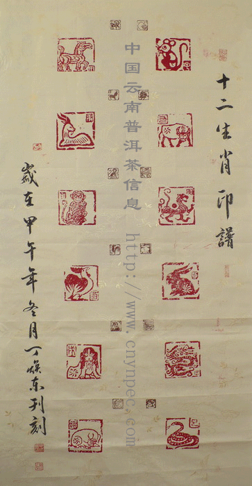 云南普洱茶信息网推荐·篆刻金石家·耕田之子·丁焕东先生作品·2015年参展金石篆刻作品·中国十二生肖·最大尺寸:10cmX10cm·