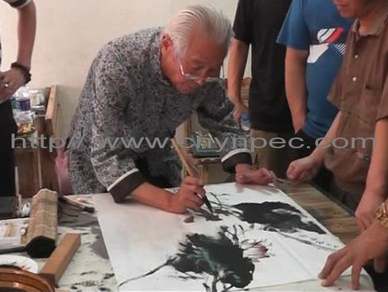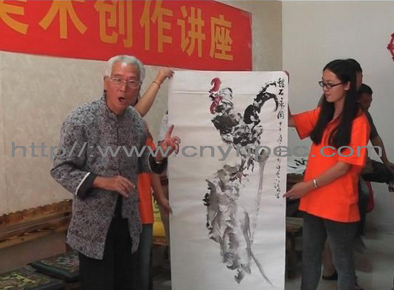 中国著名大写意书画家张晶先生现场画作鸡图-3
