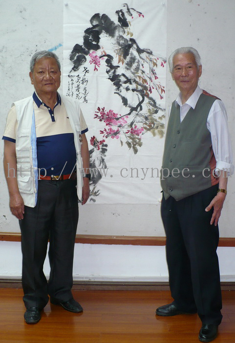 云南普洱茶信息网推荐·茶人书画家·中国著名书画家张晶先生与云南著名书画家杨玉峦先生在画室合影