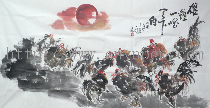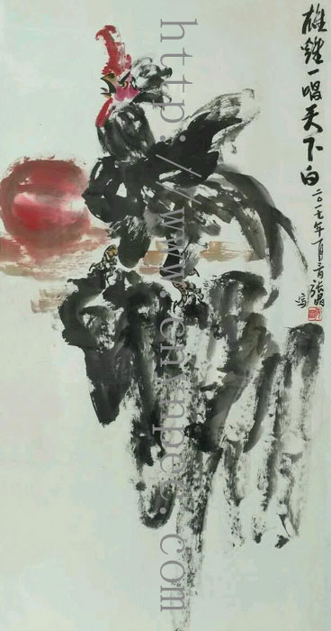 云南普洱茶信息网推荐·茶人书画家·张晶先生作品·鸡图·雄鸡一唱天下白