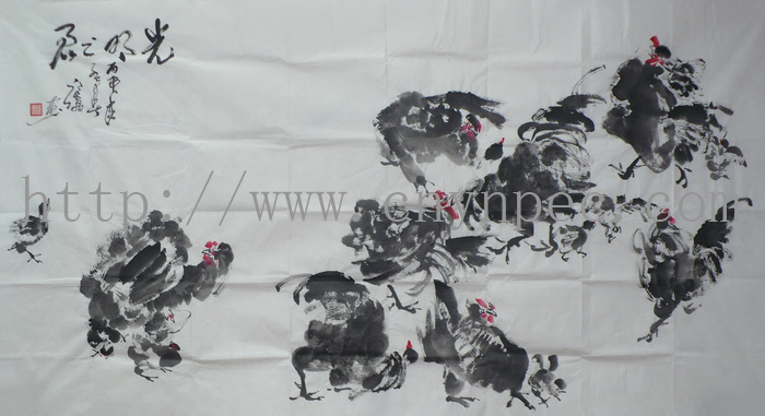 云南普洱茶信息网推荐·茶人书画家·张晶先生作品·丁酉年正月初七大写意·鸡年作品·鸡图·大吉祥