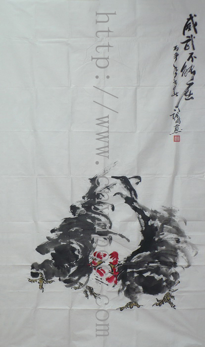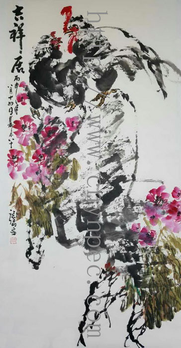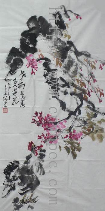 云南普洱茶信息网推荐·茶人书画家·张晶先生作品·雄鸡叫春图·中堂