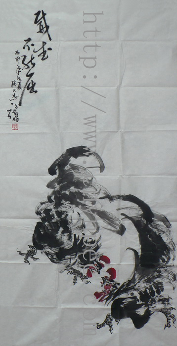 云南普洱茶信息网推荐·茶人书画家·张晶先生作品·斗鸡图·中堂