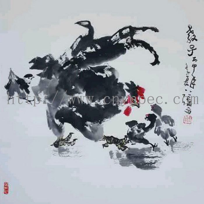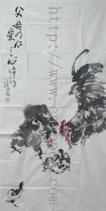 云南普洱茶信息网推荐·茶人书画家·张晶先生作品·鸡图·教子