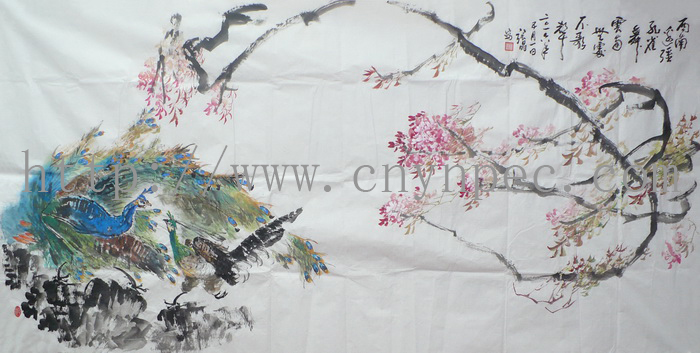 云南普洱茶信息网推荐·茶人书画家·张晶先生作品·孔雀图·春风得意