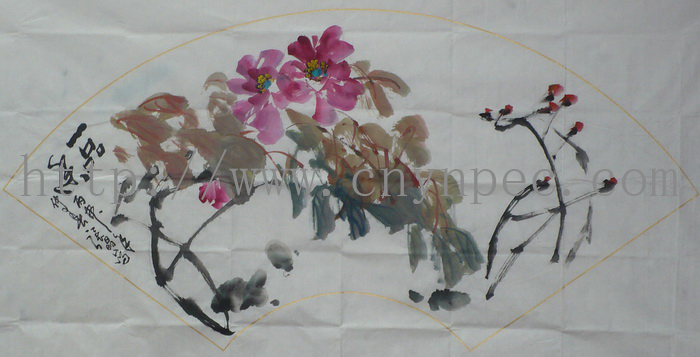 云南普洱茶信息网推荐·茶人书画家·张晶先生作品·牡丹扇形图·横幅