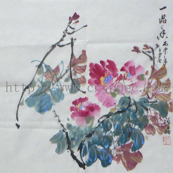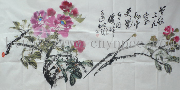 云南普洱茶信息网推荐·茶人书画家·张晶先生作品·牡丹图·横幅