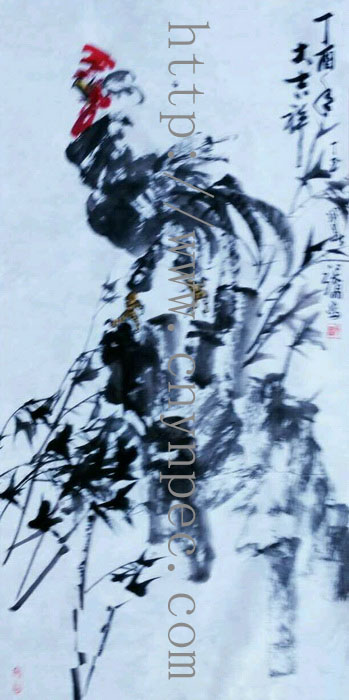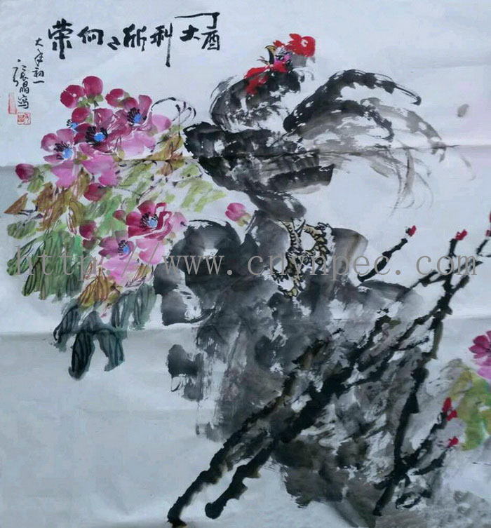 云南普洱茶信息网推荐·茶人书画家·张晶先生作品·丁酉年正月初三大写意·鸡年作品·鸡图·