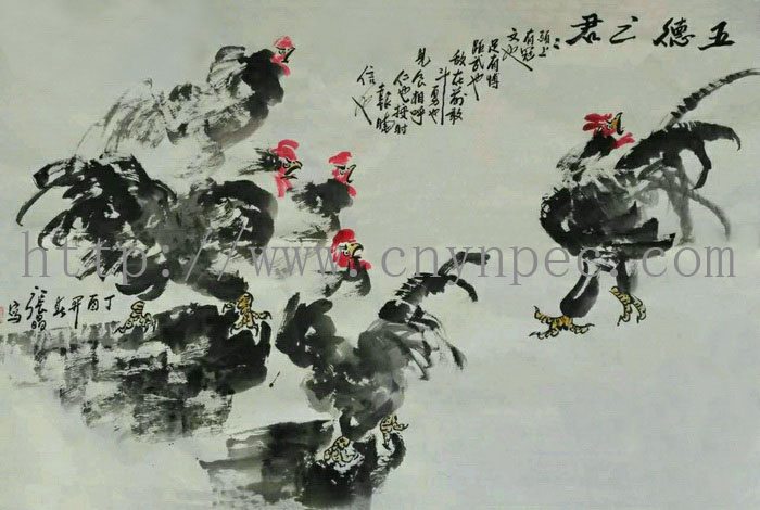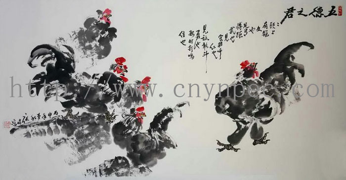 云南普洱茶信息网推荐·茶人书画家·张晶先生作品·群鸡图·五德之君