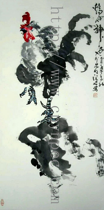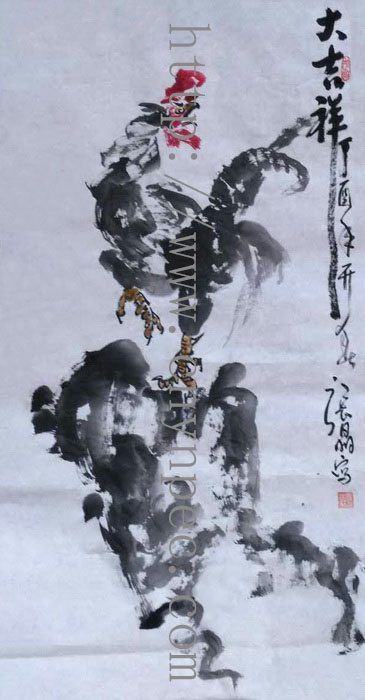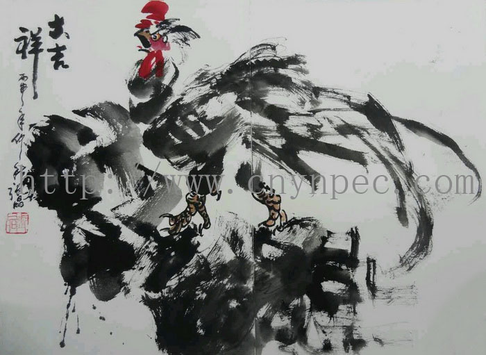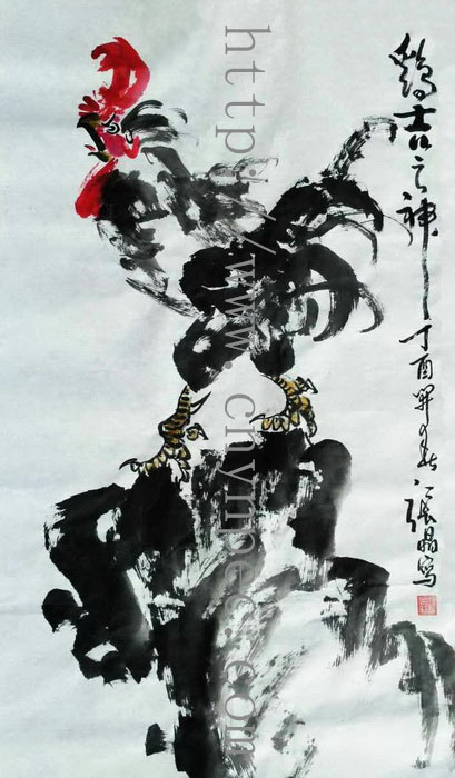 云南普洱茶信息网推荐·茶人书画家·张晶先生作品·丁酉年正月初七大写意·鸡年作品·鸡图·鸡吉之神