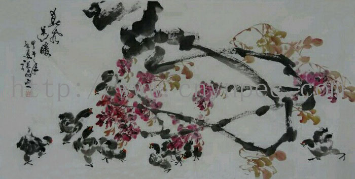 云南普洱茶信息网推荐·茶人书画家·张晶先生作品·小鸡图·春之歌