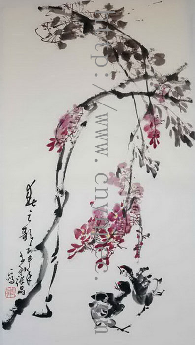 云南普洱茶信息网推荐·茶人书画家·张晶先生作品·花鸟图·中堂