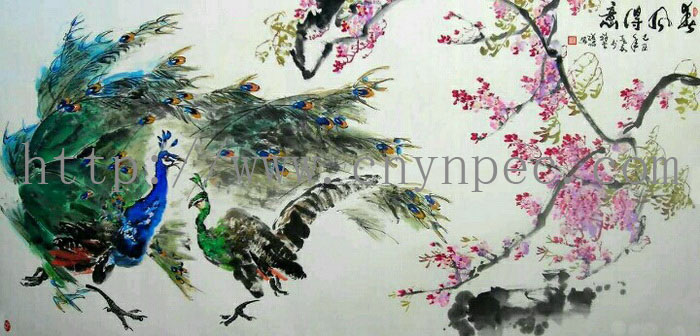 云南普洱茶信息网推荐·茶人书画家·张晶先生作品·孔雀图·横幅
