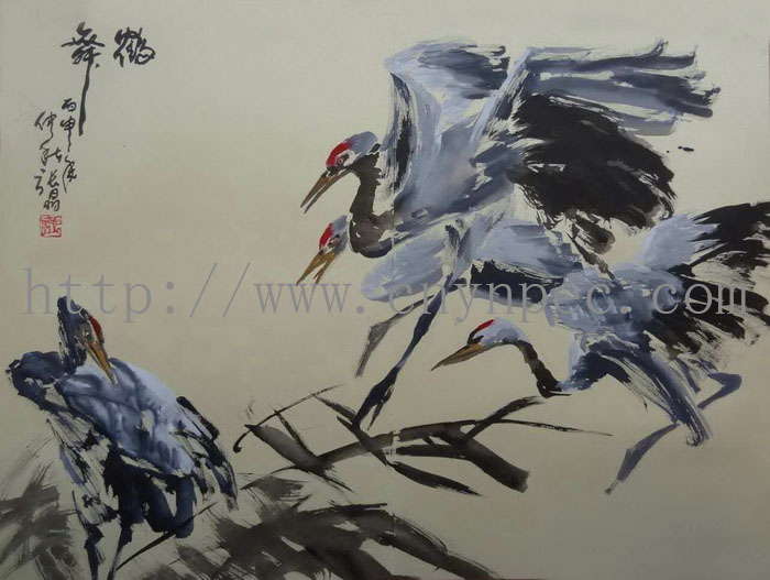 云南普洱茶信息网推荐·茶人书画家·张晶先生作品·鹤图·鹤舞